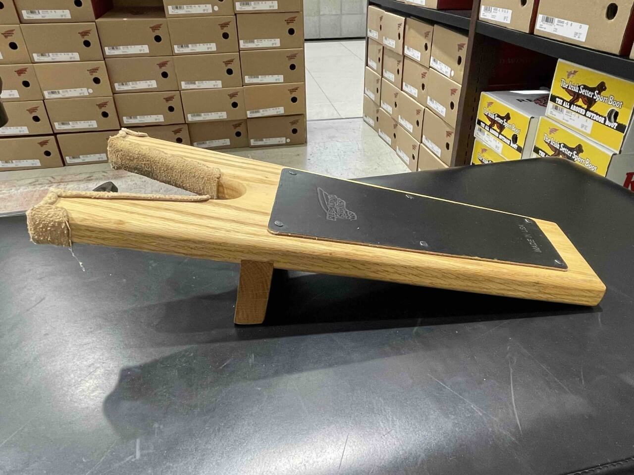 これはブーツを簡単に脱げるようにするための道具です。もちろんプルオンブーツ以外にも使えます。