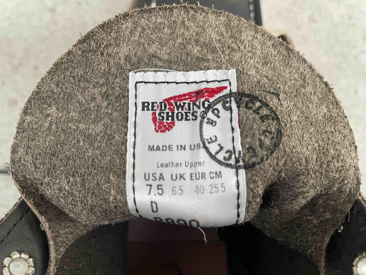 レッドウィング8890の右足・内側
