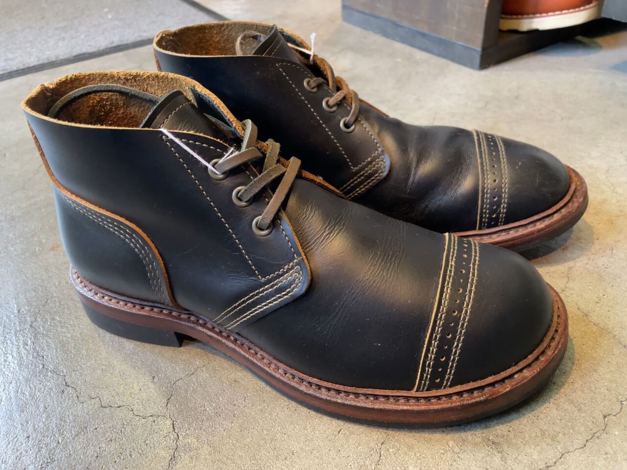 ブラック・クロンダイクレザーは日本市場で神格化され続けてきた茶芯時代のブラックレザーを再現したレザーであり、全盛期にはエンジニアブーツ2種(スチールトゥ、ノンスチールトゥ)、アイリッシュセッター3種(モック、ラウンド、ビブラムソールカスタム)、モックオックスフォード、ロガーブーツ、ベックマンフラットボックス、ハンツマン、ビリーブーツという数多くのモデルに採用されていました。